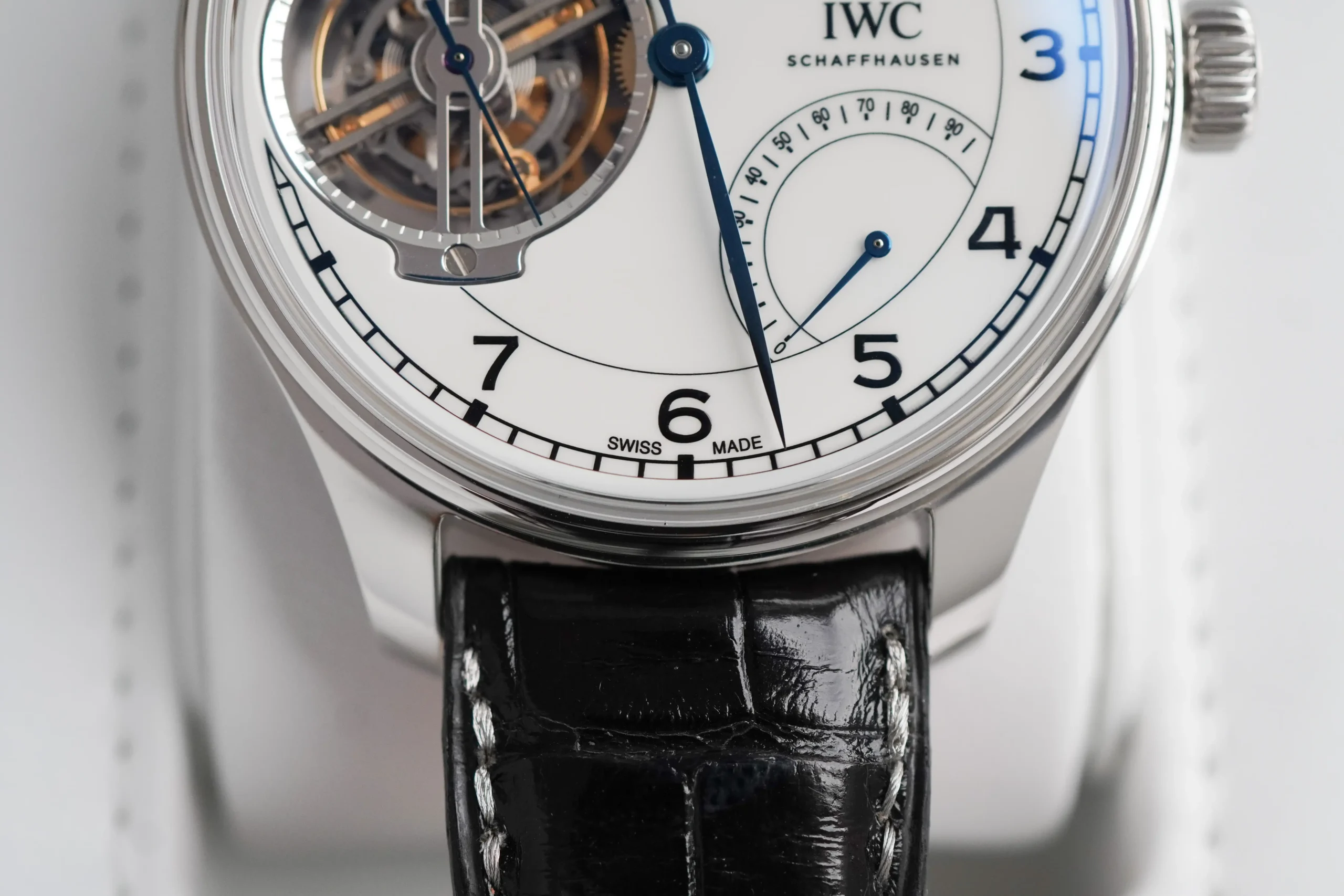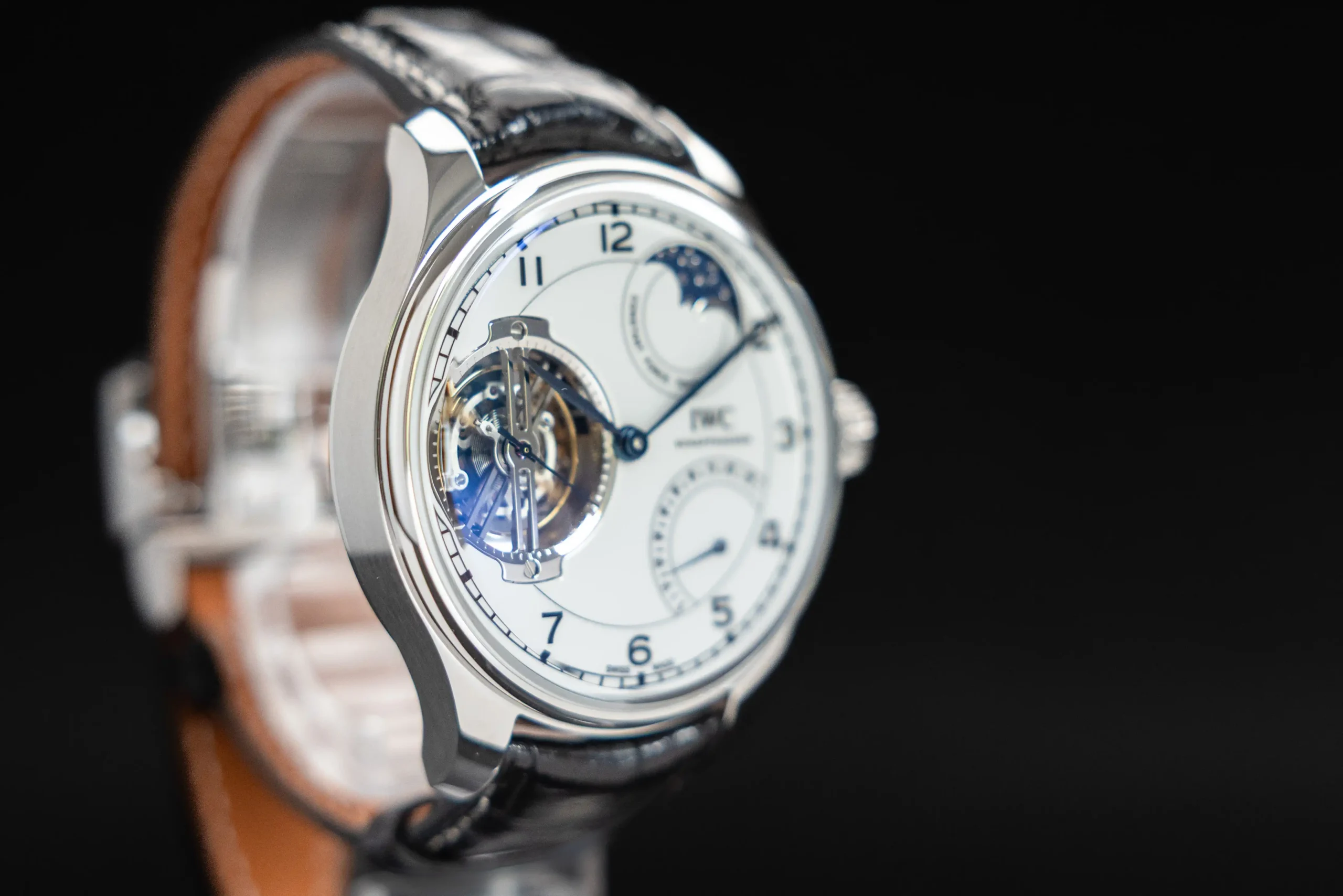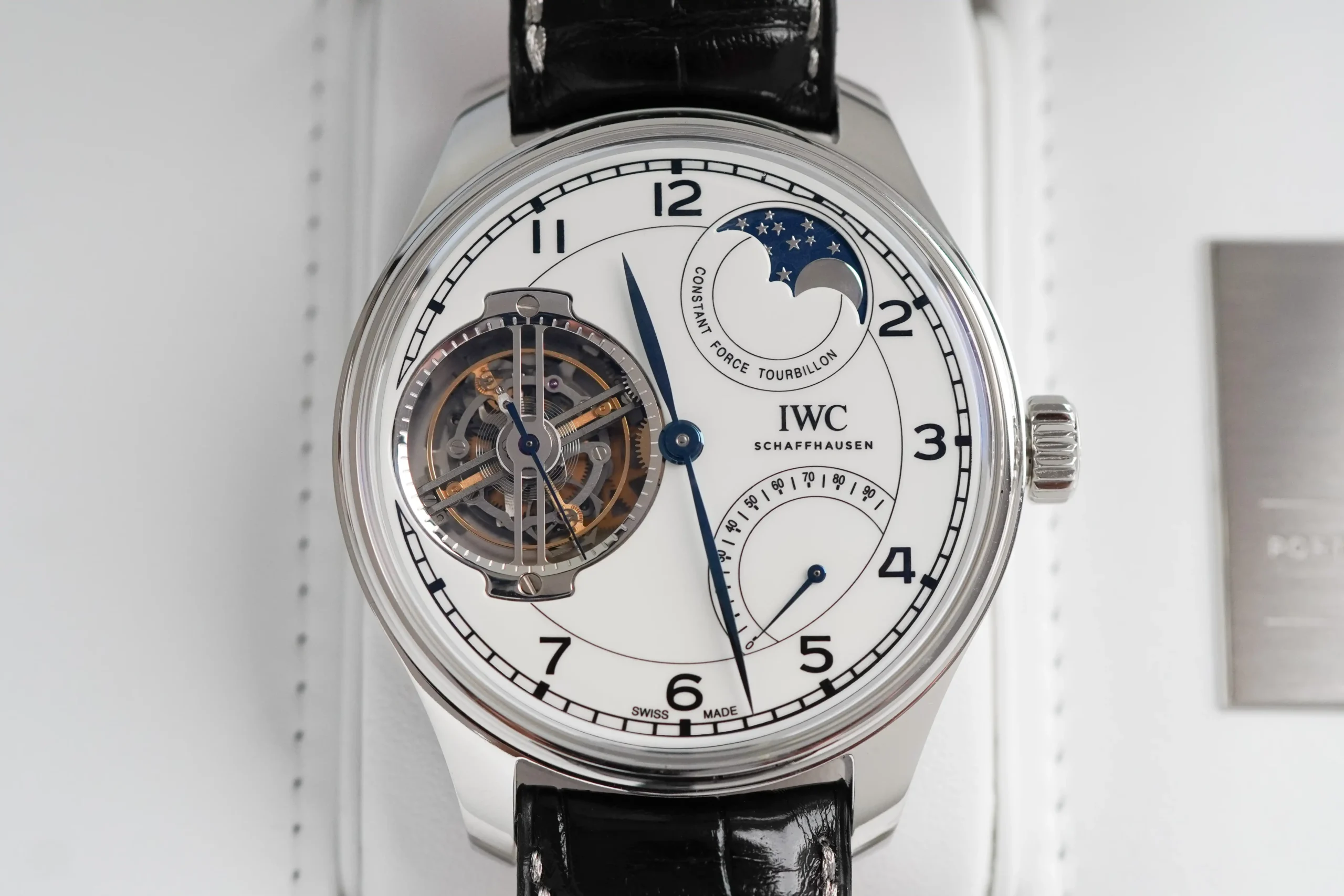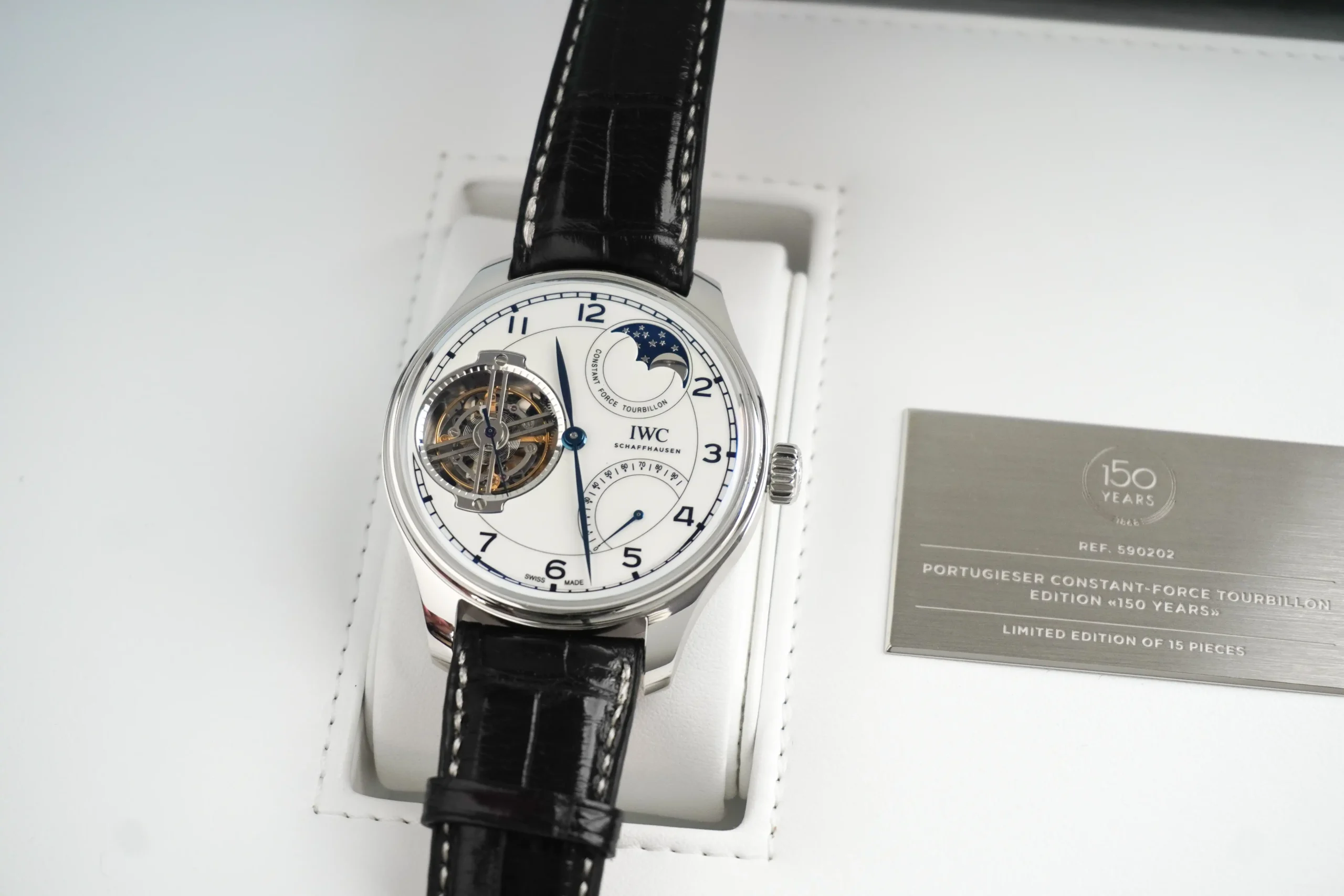 Abgerundet wird die Uhr durch ein edles Alligatorlederarmband, das perfekt mit der luxuriösen Platin-Faltschliesse harmoniert. Die Kombination aus edlen Materialien, zeitloser Eleganz und technischer Perfektion macht die IWC Portugieser 150 Years Constant-Force Tourbillon zu einem Höhepunkt der Jubiläumskollektion und zu einem Traum für Liebhaber feinster Haute Horlogerie.