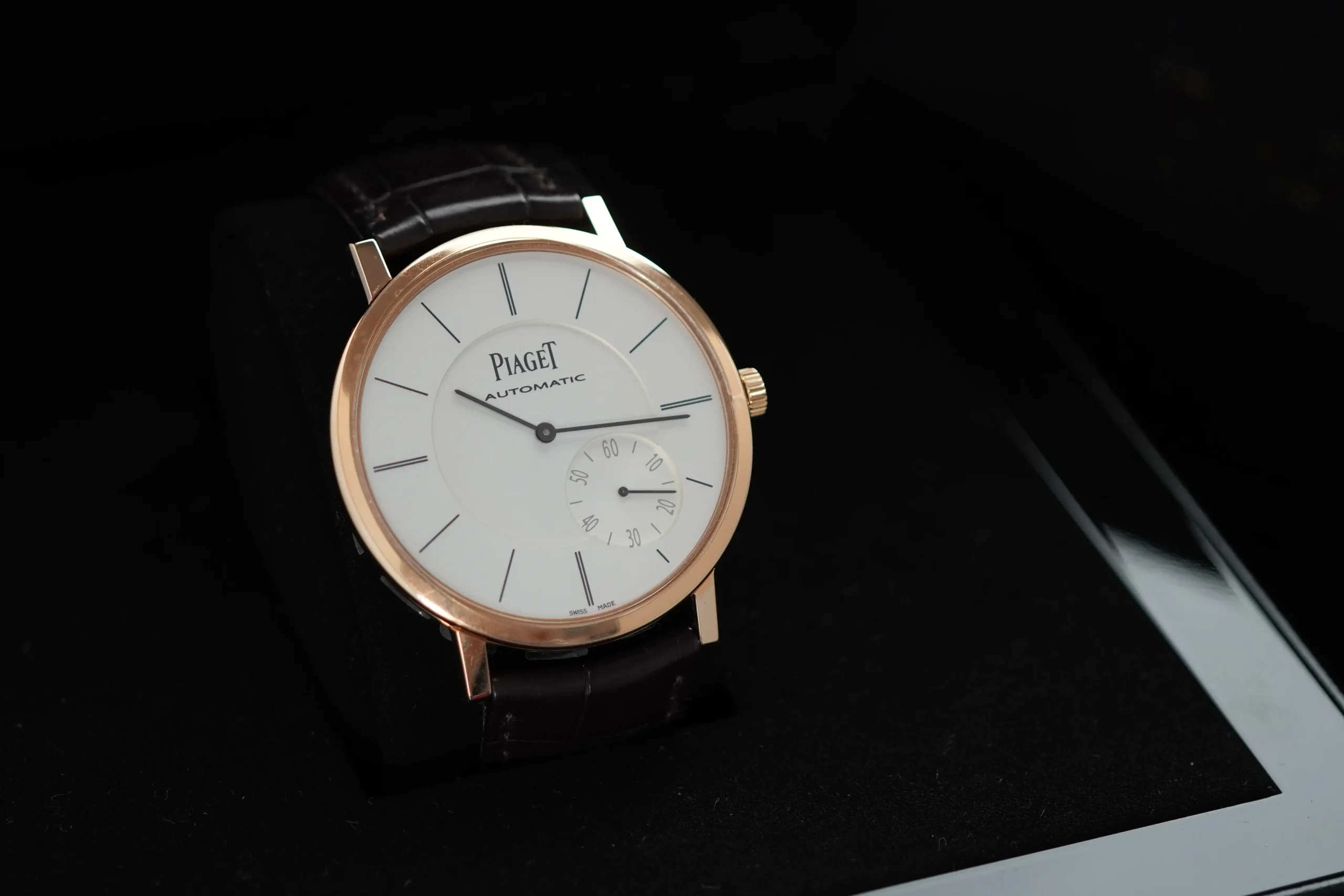 Diese elegante Piaget Altiplano verkörpert das Beste der ultraflachen Uhrmacherkunst. Dieses Modell ist neu und ungetragen und wird mit originaler Box und Papieren geliefert. Die original Sticker sind auch noch drauf
